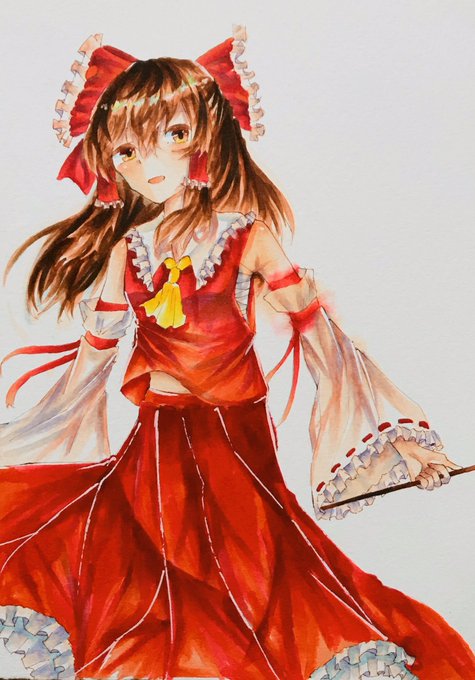 1 5 霊夢描いてみたー😆 色がぼやけてるのは気にしないで…事故だから😂 #東方 #博麗霊夢 #コピック 20/03/22 19:29