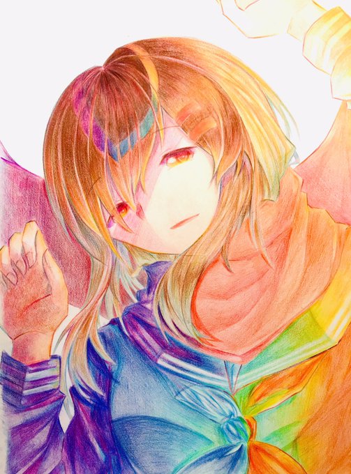 夕焼けスカート #オリジナル #女の子 #色鉛筆画
