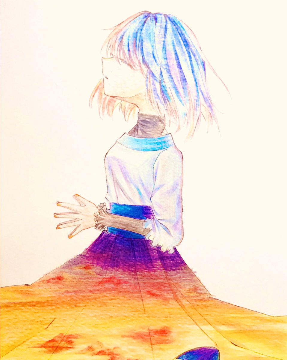0 4 夕焼けスカート #オリジナル #女の子 #色鉛筆画 21/12/18 14:26