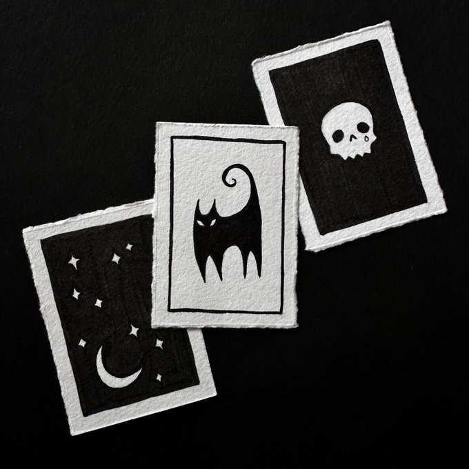 Some more spooky doodles from #inktober2022 💀🐱✨
