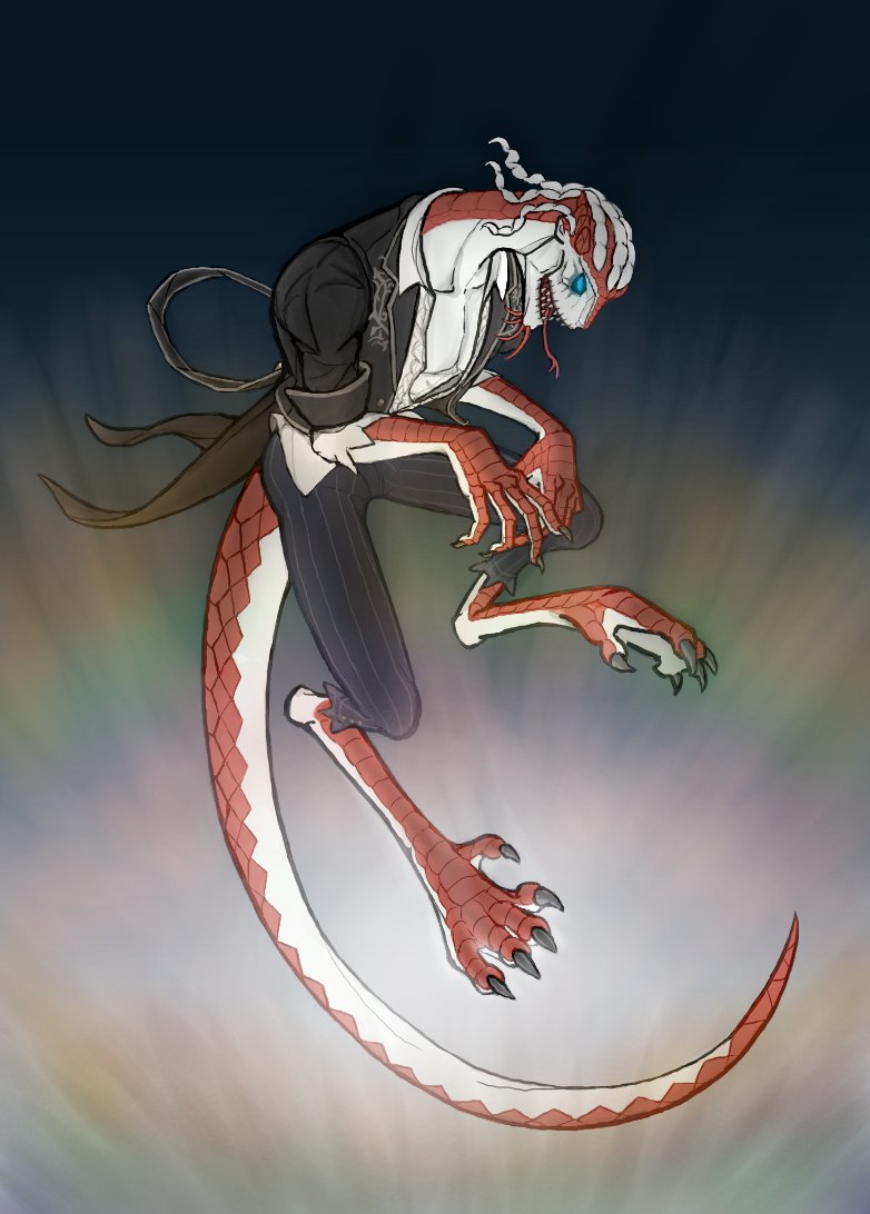 取り急ぎヘッダーの絵と完成した下書きです。ルキノは難しいけどめちゃくちゃ描き甲斐があって本当に楽しいです。細かい箇所は塗りながら直します。 #identityVイラスト #第五人格イラスト #魔トカゲ