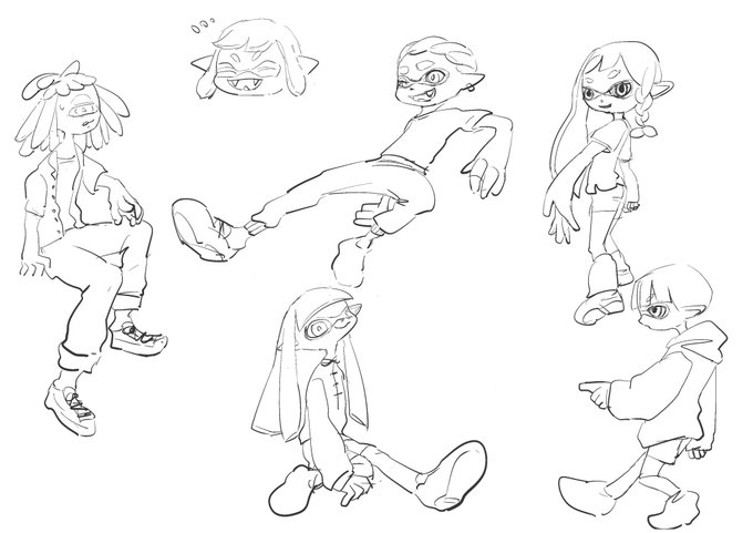 スプラトゥーンのイカちゃんたち手足大きくて可愛いね落書き #illustration #イラスト