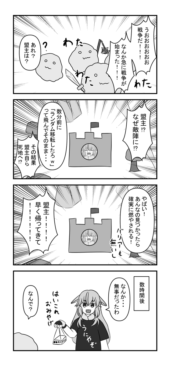 もっとちゃんとした4コマ描きたかったんだけど……時間足りなくって……全然動けなくってェ…… #もこ田ワンドロ展覧会
