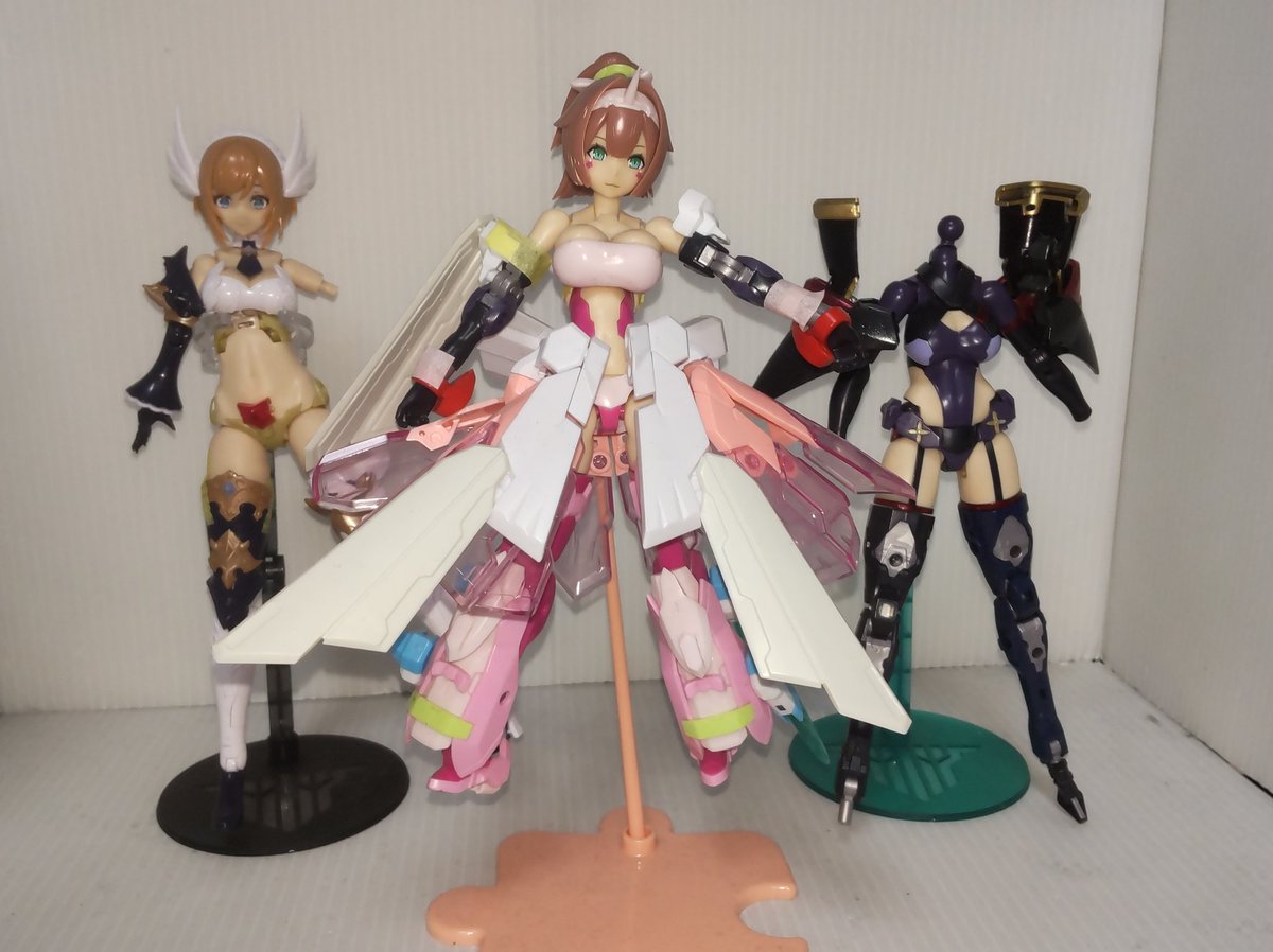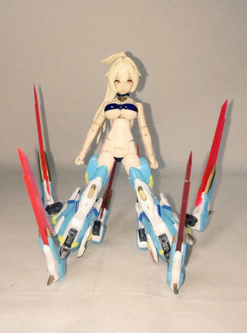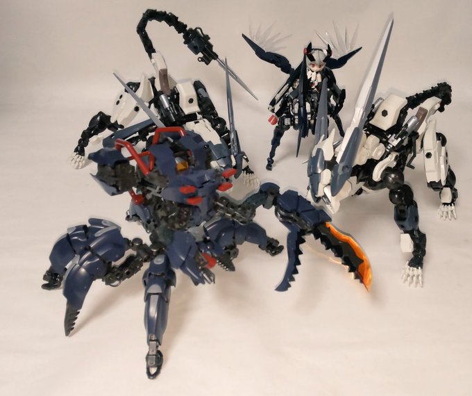 パチ組み週間に組んだ人達~。 アナザーリンちゃんまでは行けなかったです…… ベルーガもう一つ欲しいので、予算確保しなきゃです。カニも悩みます~。 あとオリキャラ~。胸部とかとりあえずで付けてますけどだいたいイメージできました。 #ヘキサギア #メガミデバイス #デスクトップアーミー