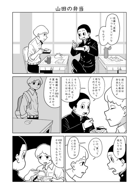 177 551 短編漫画まつりが始まるよ!!!!!! 今回は「男たちのお話」を4本+おまけでお届けします!!!!! 1本目「山田の弁当」 1/2 #漫画が読めるハッシュタグ #漫画 #マンガ #オリジナル 23/03/11 19:57
