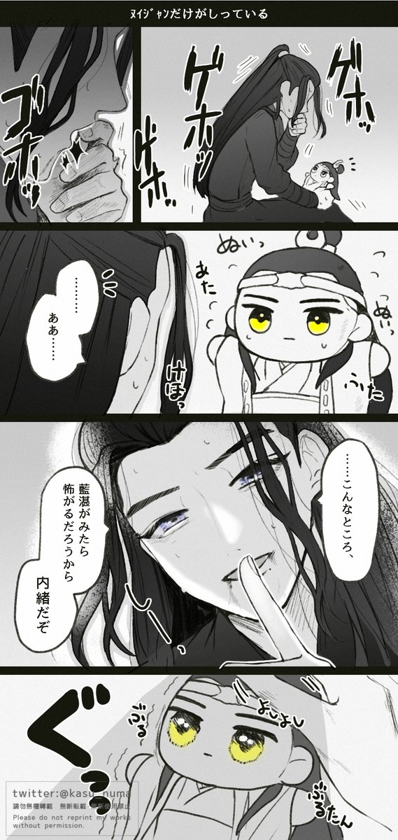 ※ちょっぴり吐血描写注意 うぇさんが実はときどき血を吐いちゃってることをヌイジャンだけが知ってたらどうしよう…って昼間に妄想してたやつです