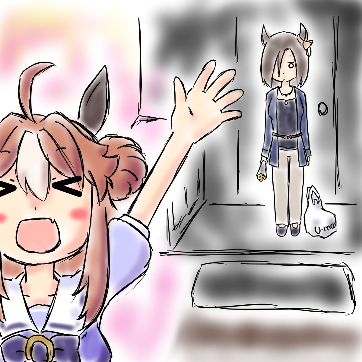 お揃いのストラップとかキーホルダーとか、こっそりつけてるけど割と早く周りにバレるやつ。 …もしかしてまともなアイネス描いたの初めてか? #ウマ娘 #ウマ娘プリティーダービー #アイネスフウジン twitter.com/syumi12345/sta…