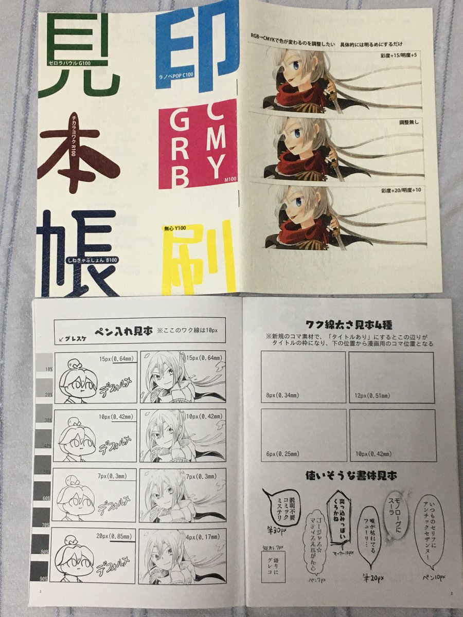 一冊から作れるので、自分の過去絵で印刷見本(画像参照)を作ると、いつものペンこんな細いんだ…印刷出てない…がわかって便利です 印刷所さんのリンク シメケンさんの見積もり shimeken.com/print/doujinshi ちょ古っ都さんの見積もり chokotto.jp/calculation.ht… ペンタローさん pentaro.jp/products/douji…
