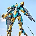全身のイメージの筋トレ(20230605-2) 月に関連付けたモチーフをこんな感じで入れてました。 ①満月を模した飾りえり ②月見団子型の肩アーマー ③三日月型の角 ④月のうさぎの杵 ⑤三日月型の肘パット ⑥満月の前垂れ模様 ⑦三日月の抜き穴 #かたち屋さん #今朝の筋トレ #オリキャライラスト