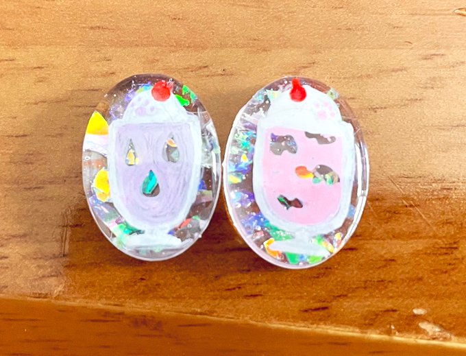 レジンにイーヌのクリームソーダ描いてみたんだけど、指輪にしたら割と可愛いんじゃないかと思うなどした🐕🐕