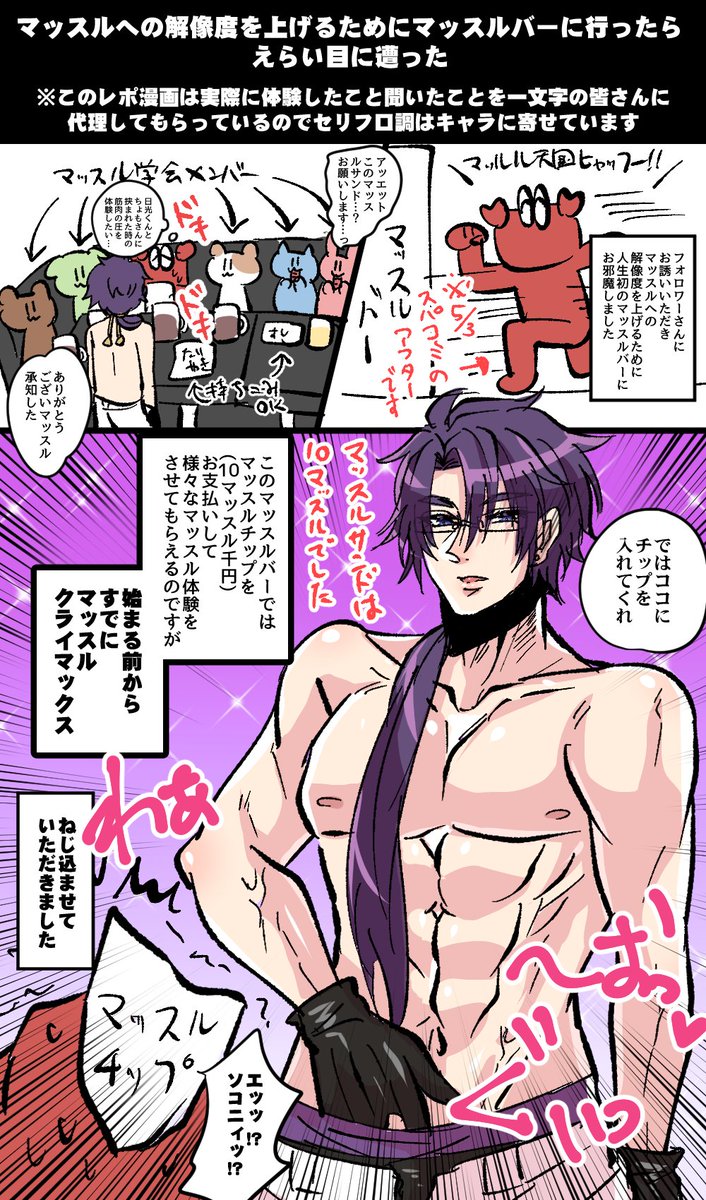 スパコミのアフターで生の筋肉を体験してきましたレポ①💪 ※このレポは実際に体験したこと聞いたことを一文字のみなさんに代理してもらっているので、セリフ口調はキャラに寄せています