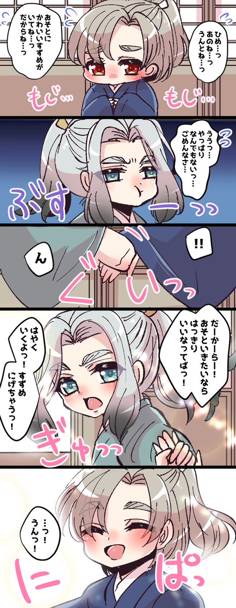 小さい頃は引っ込み思案だった山鳥毛さんを姫鶴さんが世話焼いて引っ張ってあげてたら可愛いなという捏造妄想です🐥