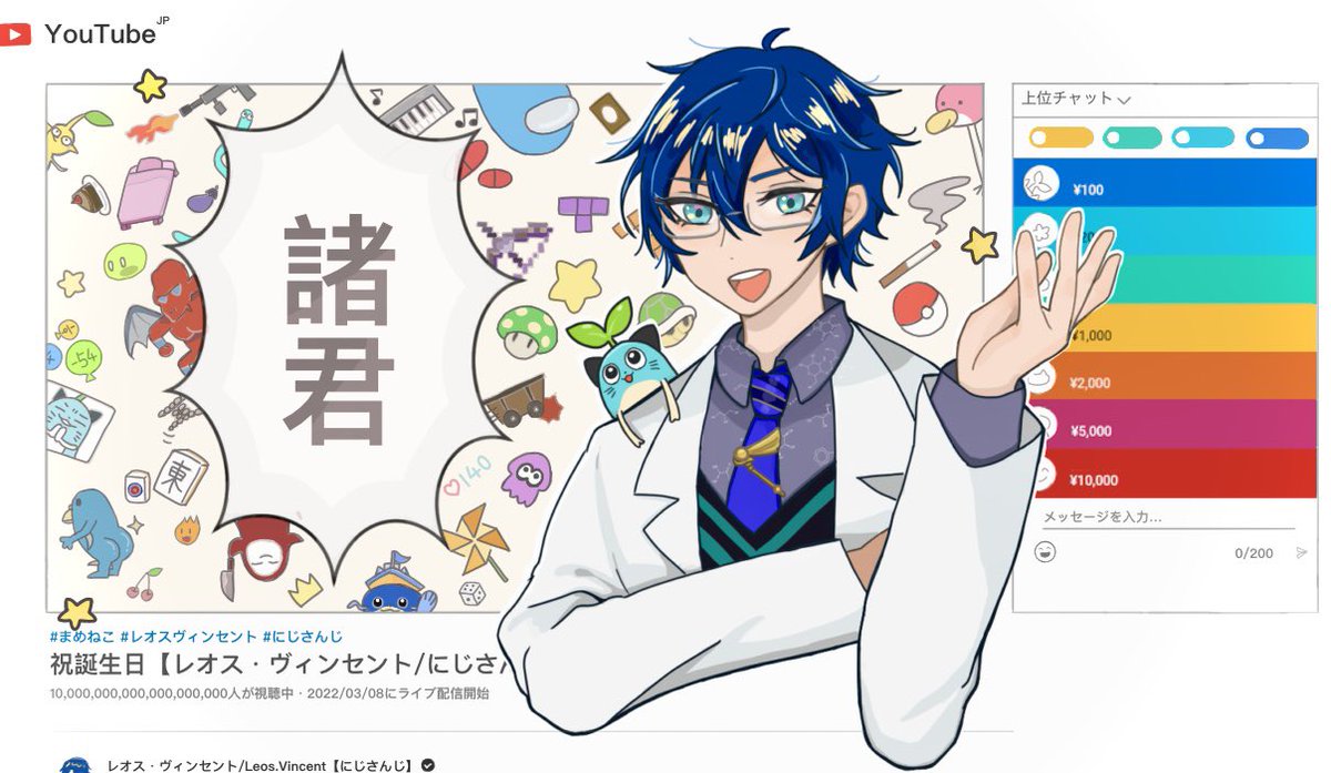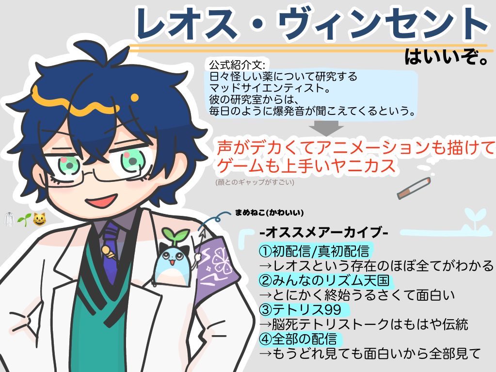 レオス博士お誕生日おめでとうございます!🍰🎉🐱🌱いつも楽しく拝見してます!!応援しております👏 29歳2回目健康にはお気をつけて楽しんでください😊👍👍👍 #レオス・ヴィンセント誕生日29歳13ヶ月 #まめねことレオス
