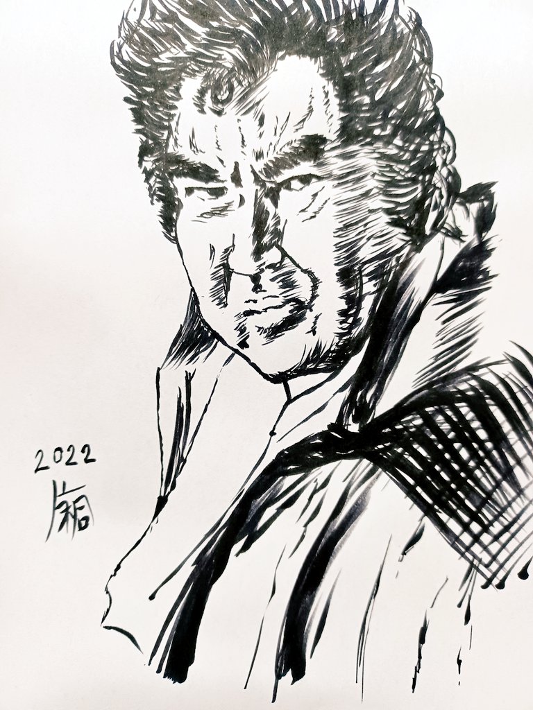 1 19 [藤岡弘、] 筆ペン一発描き 写真模写 #絵描きさんと繋がりたい #イラスト 22/08/05 02:46
