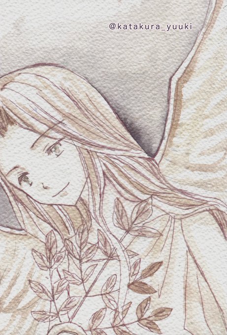 4 23 #ルーレットで絵を描こう ①天使×葉っぱ×茶色 素敵企画参加失礼します。 紙→アクリルデネブ 絵の具→遊夜様「あずき」「キート」 23/07/27 20:19