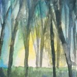 #水彩行進曲 暗い。 スキャンすると思ったより明るい作品に。 「まっくらもりのうた」をイメージしました。