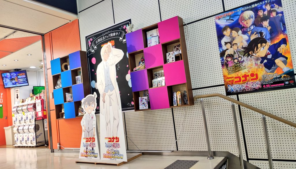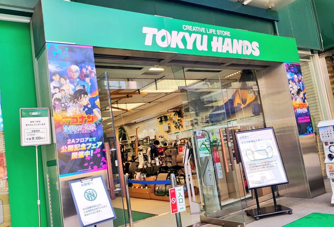 35 370 コナンコラボのフェア中につき、東急ハンズ渋谷店へ。階段の踊り場のPOP設置と、壁面や段差の側面への装飾、それからモニターで予告が流れていました(通りかかった幼女が「あっ、コナーーン!」と指差してました。可愛い) POPの後ろにある、青色からピンク色のグラデ棚がキレイで、目立っていました 22/04/10 13:48