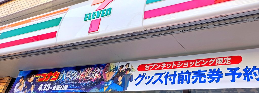 48 850 セブンイレブンの入り口にコナンの垂れ幕(横断幕)がかかるシーズンがやってきましたね! 22/03/29 18:40