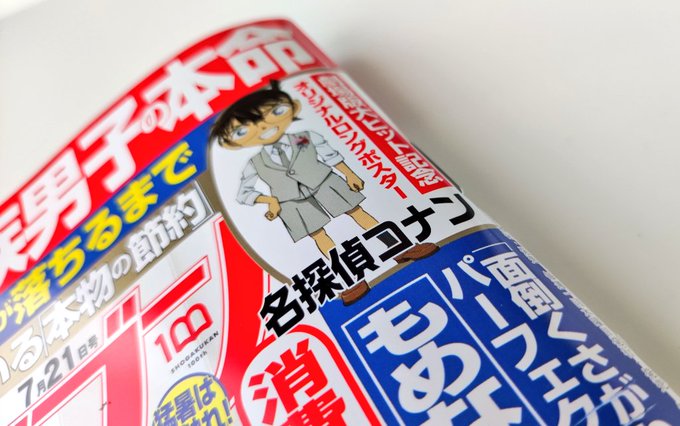 70 346 女性セブン(2022年7月21日号)を買いました。付録のコナン「ロングポスター」が驚きの長さ。測ったら26cm×56.4cm。 26cm→雑誌の縦サイズ 56.4cm→19cm+18cm+17.6cmと、内側から2回分広げられる 高木&佐藤さんはもちろん、警察学校5人各人の大きな立ち絵は嬉しい。P156にカラーのハロ嫁紹介記事も。 22/07/10 08:44
