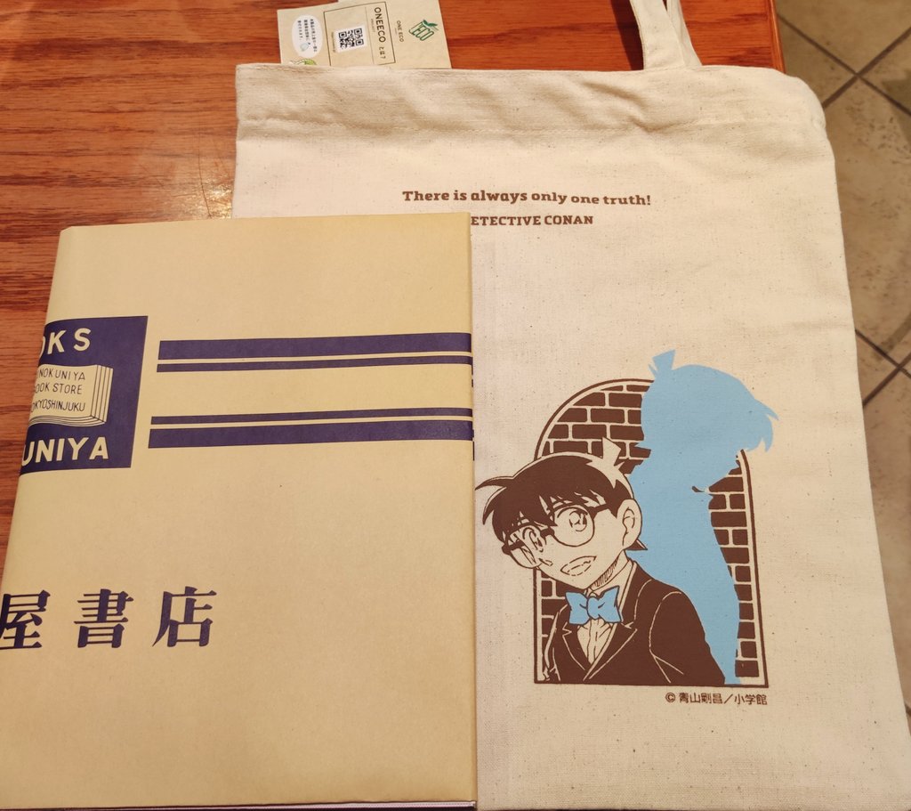 79 498 コナンの「本袋」を買いました! 本屋さんに行ったら、たまたま見つけて「こんなのあったっけ!?」と思って調べたら、昨日発売だったようです。 A4が入るサイズ感で使いやすそう(画像の本はB5サイズ)。マチなし。コットン100%で、生地は厚め。 絵柄は100巻記念つながるサンデー表紙のコナンくん! 22/12/17 21:41
