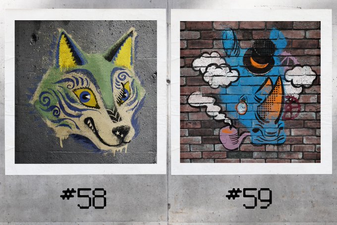 路地裏の遊び場に描かれた 動物たちの100の肖像画 「play field portrait」 動物のグラフィティを描いています。 100作品目標に描くPFPコレクションです。 🎨 opensea.io/collection/kat… #NFTJPN #NFTART #katappopfp