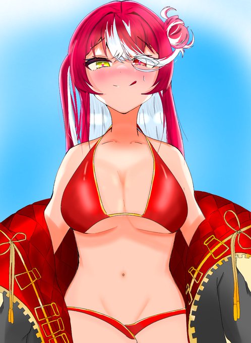 新衣装(髪型)水着船長! #マリンのお宝 #イラスト