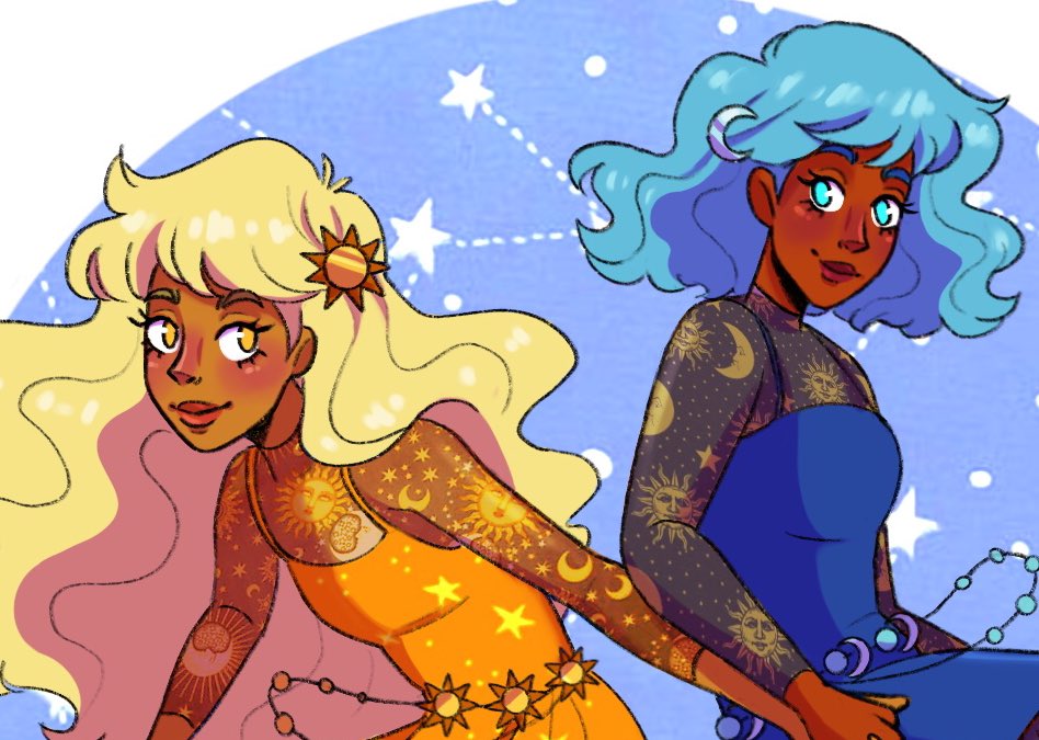 Haha what if the sun and the moon held hands? Unless? 😳👉🏻👈🏻 #artober day 9! Celestial! 💕☀️🌙 #drawtober #inktober #dailydrawing #sunandmoon #celestial #cutelesbians