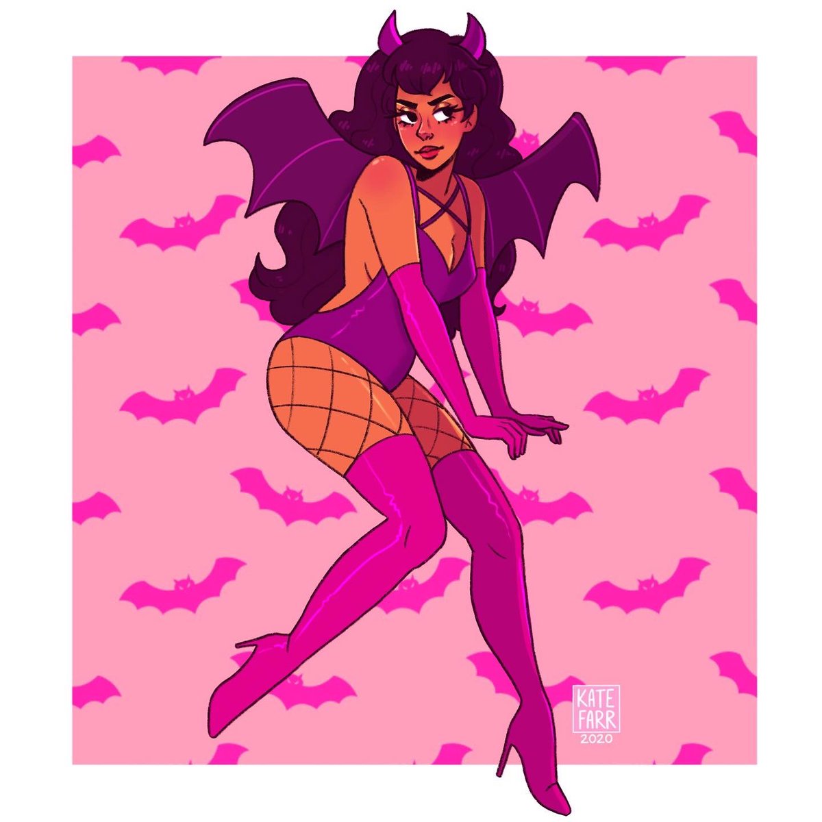 Local gay draws more babes ✨💕👀 #artober day 14! Bat! 💕🦇💕 #drawtober #inktober #dailydrawing #bats #demongirl #demonbabe