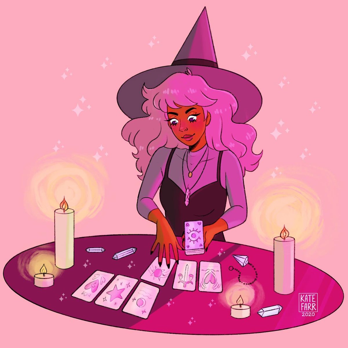 WE’RE FINALLY HALFWAY THERE 🤡💦 #artober day 16! Divination! ✨🔮✨ #drawtober #inktober #dailydrawing #witchtober #tarot #digitalart