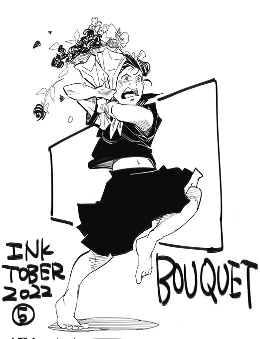インクトーバー6日目、お題はbouquet(花束)。花束を君に。 #インクトーバー #インクトーバー2022 #inktober2022 #inktober2022day6 #示現流花束贈呈 #掛け声はたぶんチェストオオオ