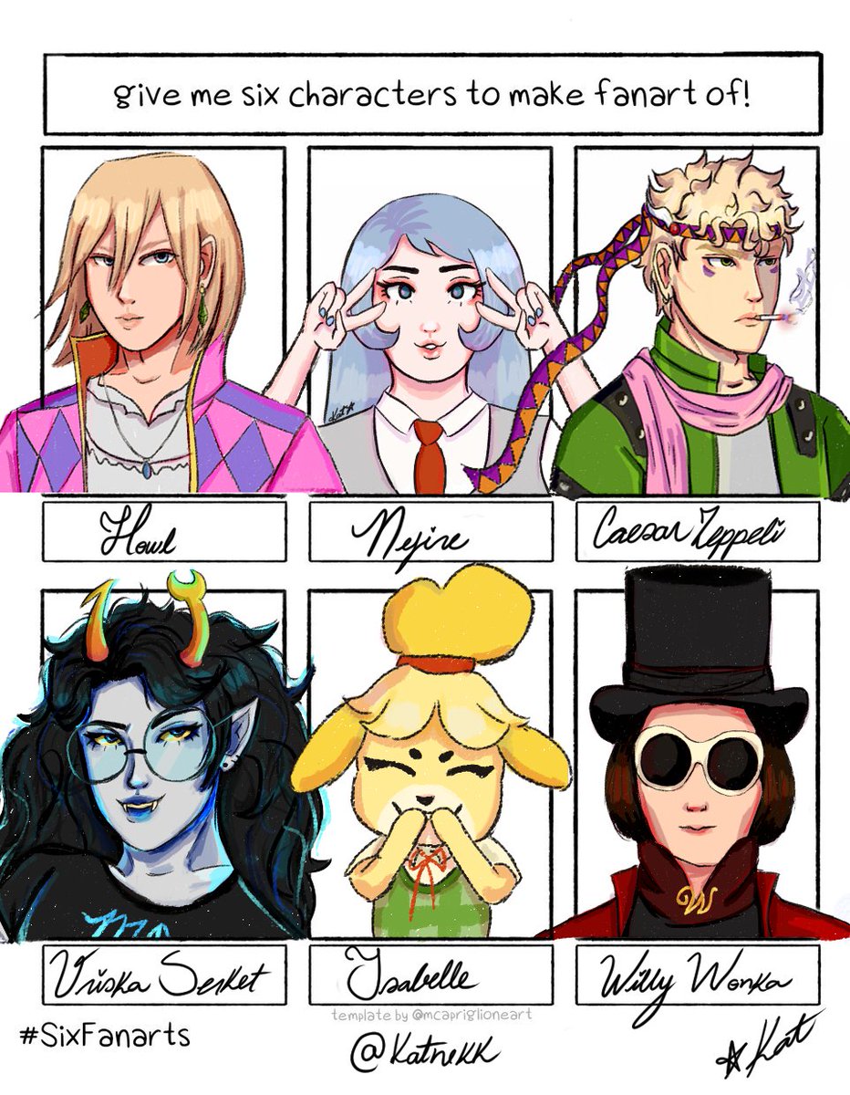 finally hnnnnnng #sixfanarts #animalcrossing #jjba #howlsmovingcastle #bnha #homestuck #willywonka