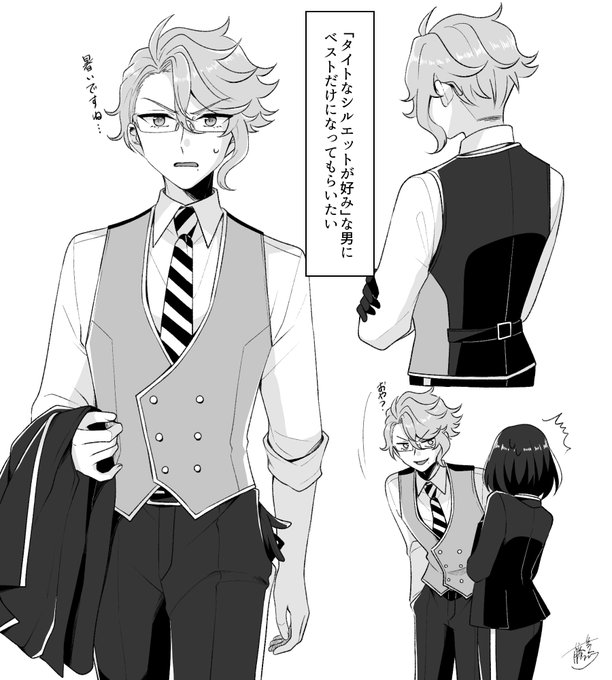 19 251 制服のベストって最高だよねのらくがき (右下だけ監がいるのでアズ監♀ってことにしておく) #twst_NL #twstプラス 23/04/02 20:52
