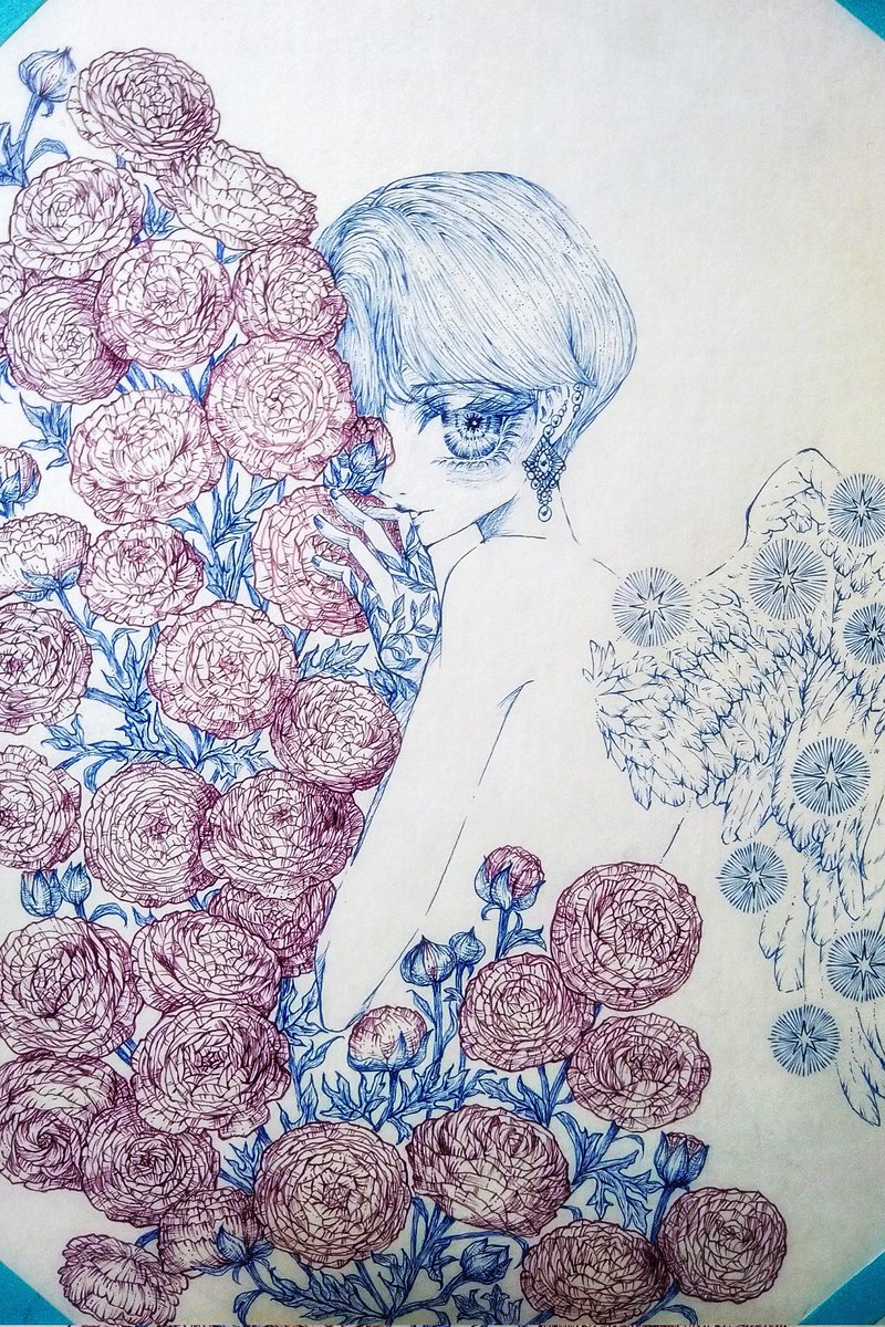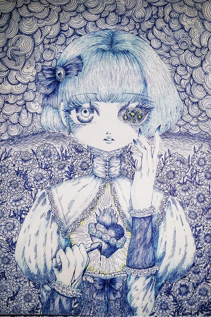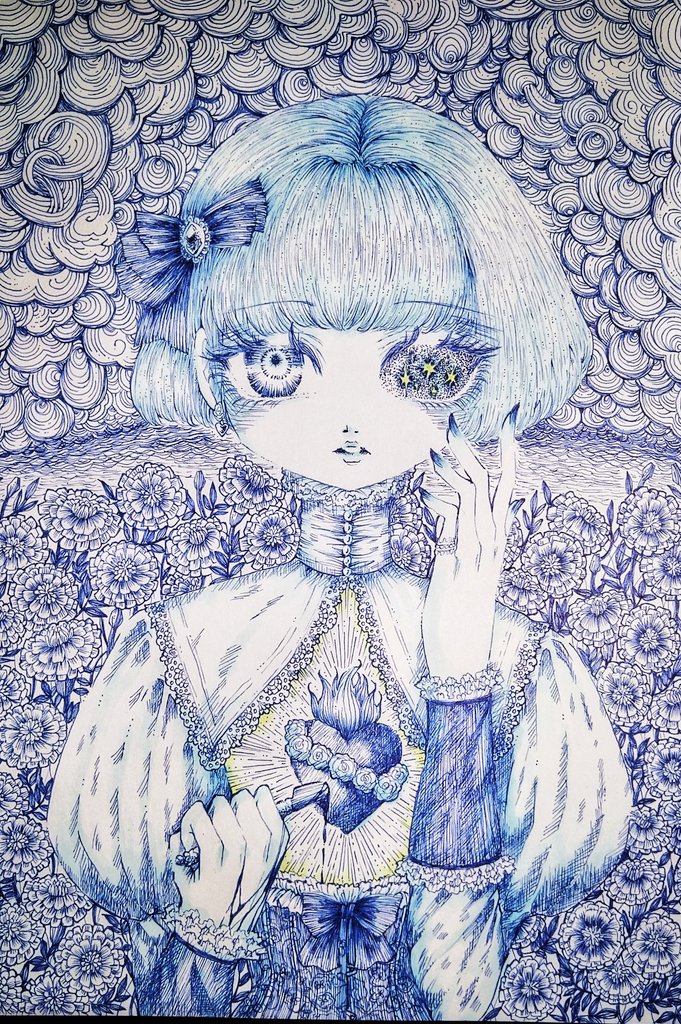 #三億アカウントの中から私を発掘してください #春の創作クラスタフォロー祭り #ペン画 #penart #illustration #copic コピックマルチライナーコバルトで描いてます😌 よろしくお願いします✨☺️