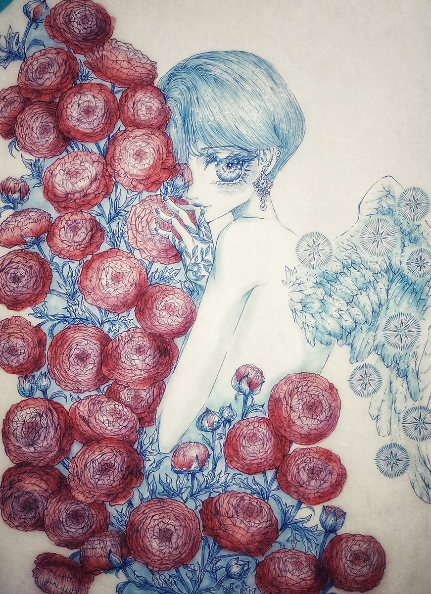 "Ranunculus" 完成!!!ちょっと赤が強かったかもしれません…💦 #illustration #penart #copic #コピック #イラスト #絵描きさんと繫がりたい #ペン画 #ArtistOnTwitter #冬の創作クラスタフォロー祭り