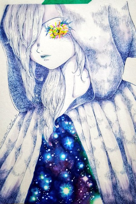 #2023年自分が選ぶ今年上半期の4枚 #illustration #penart #copic #イラスト #ペン画 #コピック 相変わらず青いです( *´艸`)最近はカラーが楽しい気分です🎶🎶