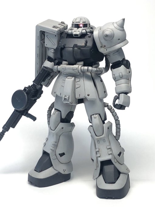 ゾック完成。 週末に晴れてたら外で撮る。ウェザリングで色のトーンが程よく落ちて重量感も出たかな。 #ガンプラ