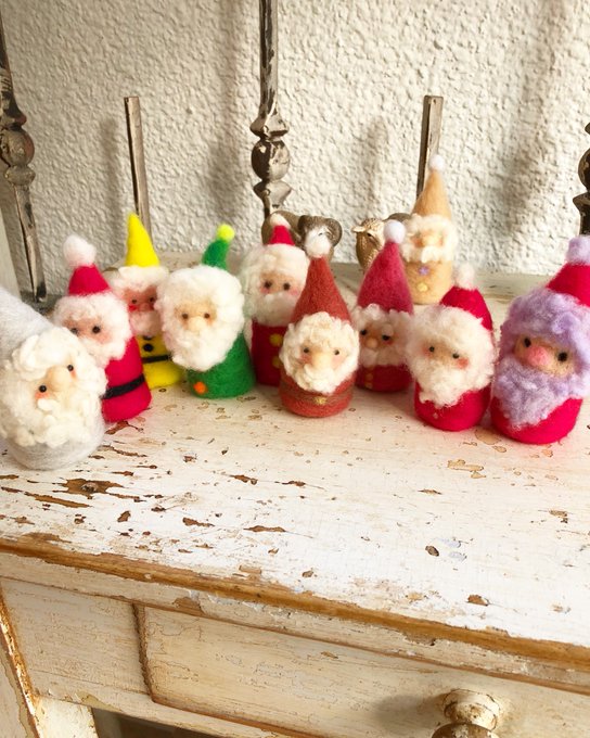 「サンタ会議」 ほっほっほーい! 今日の初レッスンに 来てくれたお友達は とっても 楽しそうじゃったのぅ〜〜 クリスマスまで おうちに飾ってくれるそうじゃ〜〜 うれしいのぅ〜〜。 ほっほっほ〜い! #羊毛フェルト @teyneyfelt #プロコースの皆さんが作ったサンタさん大集結