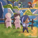 Drew my adorable round of windtrace with randos when everyone decided to be the favonius knights (and diluc) ❤️💙 #GenshinImpact #genshinimpactfanart #ArtistOnTwitter