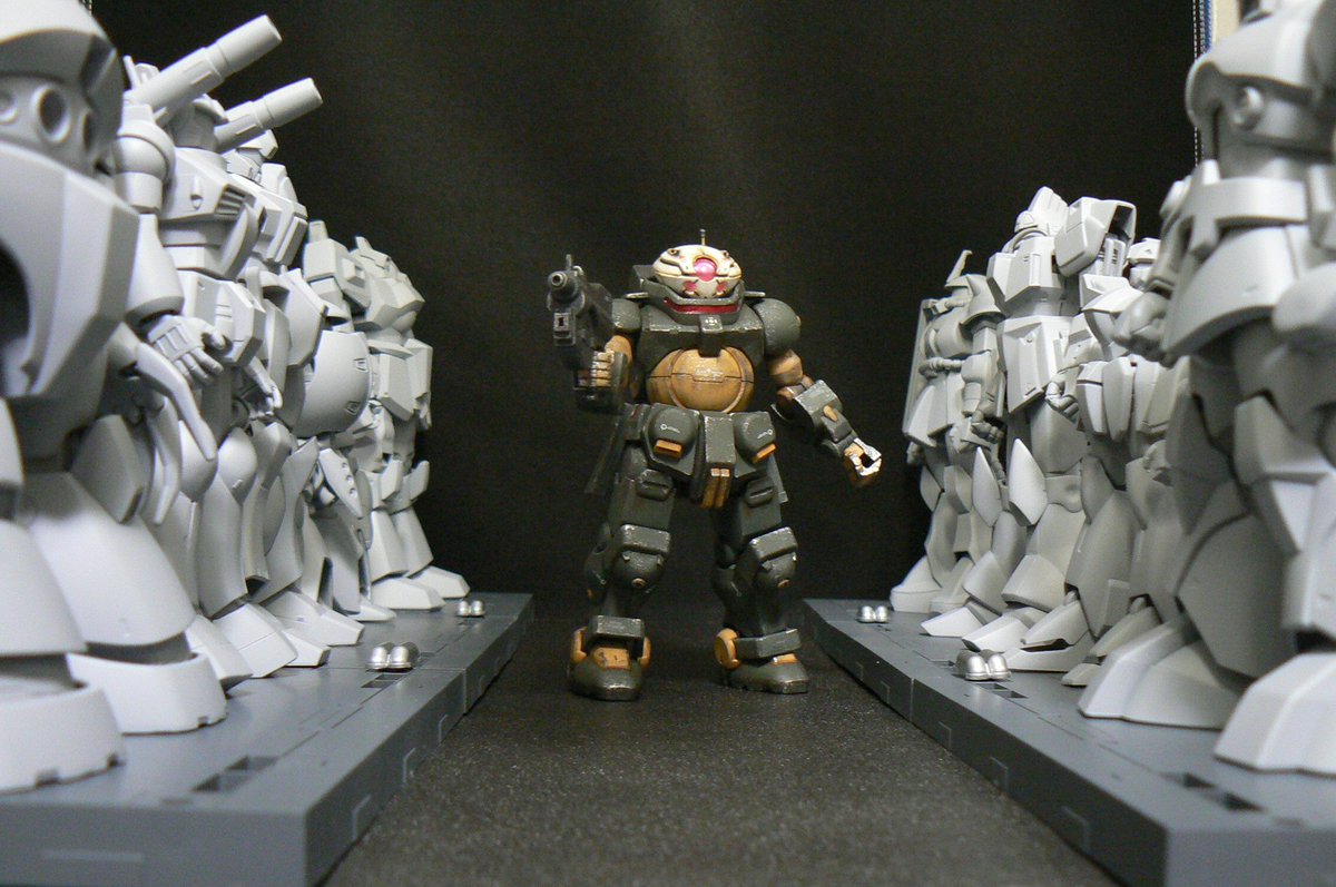 ガンプラコレクション 1/288 ギャン完成! 腕と首の角度を微妙に変えています。 このシリーズのみで立体化されたガンプラ、 同スケールの作業用ザクです。 #ガンプラコレクション #旧キット #ギャン