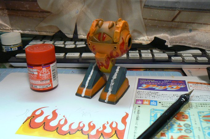 1/60 ゲルググキャノン製作中! マスキングしながら塗装中。 白いラインは、デカールがないので白を塗って マスキングしてラインを再現します。 #あげるぜ旧キット花火 #旧キット #ガンプラ