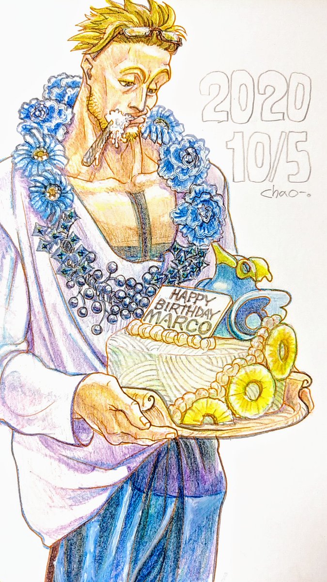 71 240 ✨✨✨!マルおめ!✨✨✨ これまだ描き途中なので後日完成させますね🐣 #マルコ誕生祭2020 #不死烏マルコ誕生祭2020 20/10/05 03:35