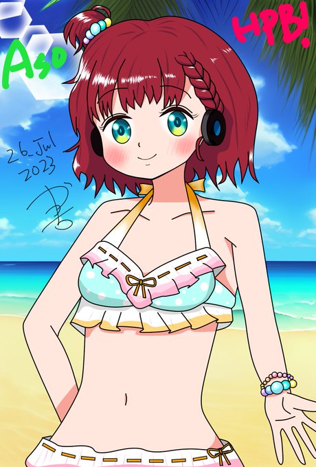 今年のゆのかちゃんのバースデーイラストです。 昨日実装されたばかりの水着になりますが、彼女はビーチよりどうしても温泉に連れて行きたいらしいです。 ゆのか「このタオルはなにかにゃ~?にゃは★」 そ・・それは実際私が売ってるやつwww ゆのか「温泉いこ~❤️」 #上ノ山ゆのか #駅メモファンアート