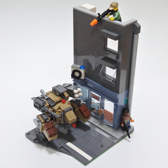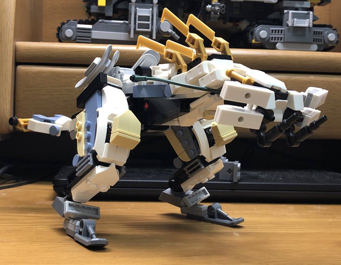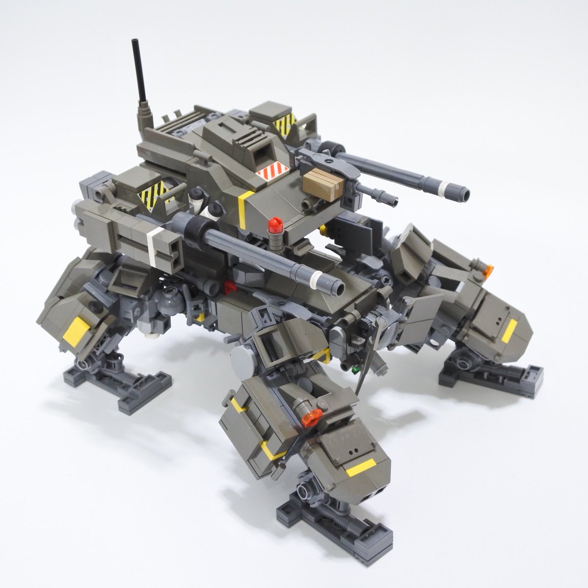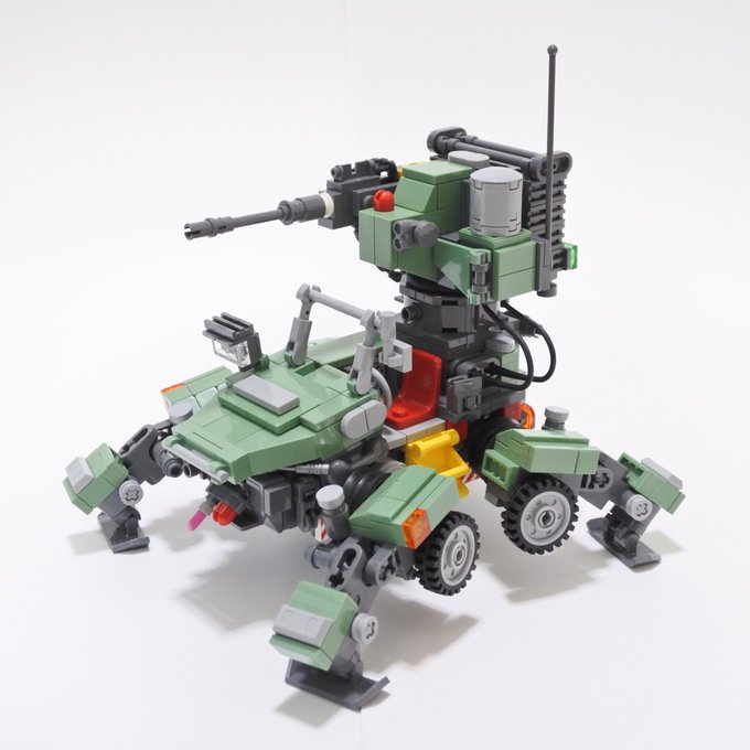 「Ez-1700 Lizard」 電動で動くレゴメカ作りました〜!! ジャンプ中の機動兵器を狙う対空歩行戦車だけど、搭乗者は剥き出しだし、動きは遅いし、一世代前の機体だしでみんな乗りたくないという設定。最低3人乗り #レゴ #レゴロボ twitter.com/i/web/status/1…