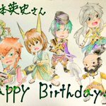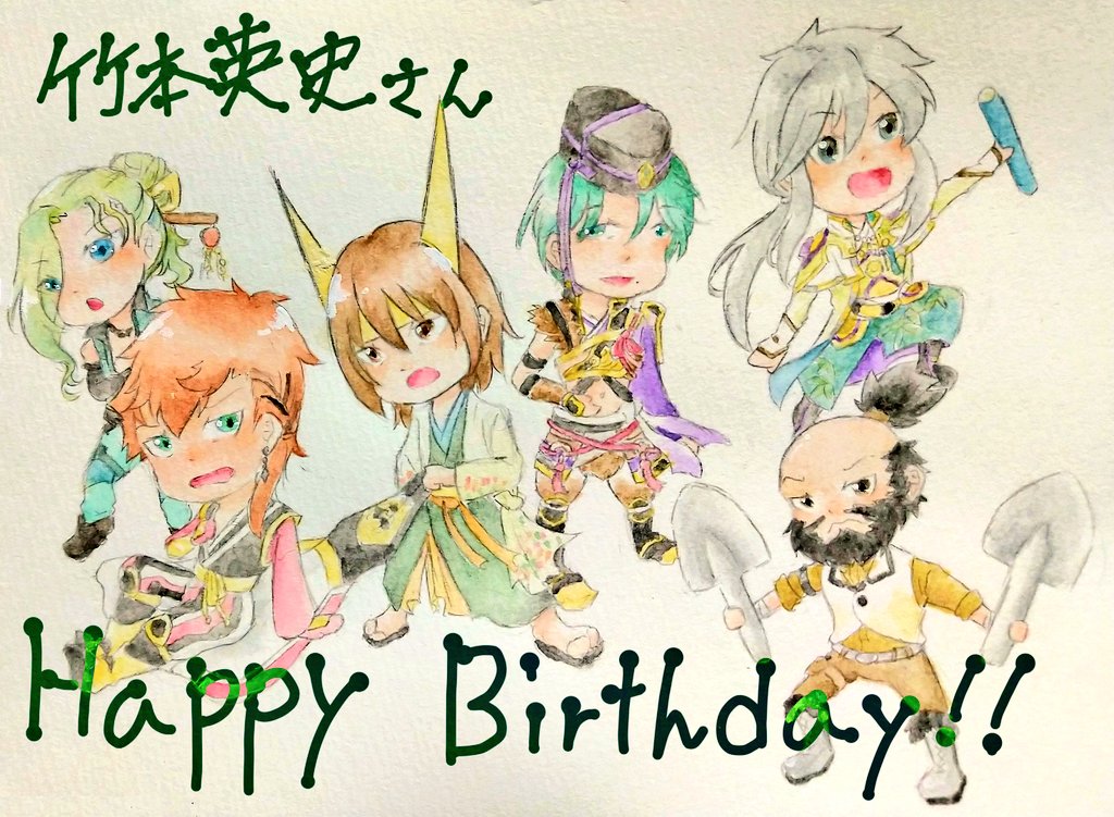 2 9 #竹本英史さん誕生祭2021 ケーキも食べました😋 ケーキついでに、前に描いた清四郎と虎の衣装を着た三成と、一昨年、去年のおたおめイラストもあげますね。 21/03/07 14:05