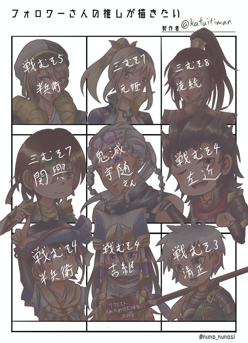#フォロワーさんの推しが描きたい お待たせしました!!リクエストありがとうございました! 無双でナンバリング指定無かったキャラは、私の気分でナンバリング決めてますー🙂