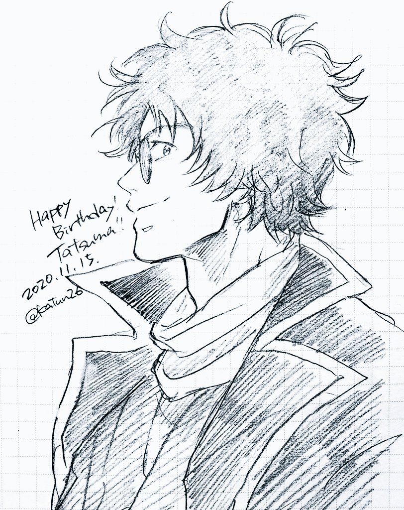 辰馬お誕生日おめでとう~~!!5年前の赤ブーさんのイベントで等身大パネルイラスト描かせてもらった時の奴!使いまわしでごめんやけども!絵柄が若干変わってるけども!!微妙に色味とか手を加えてお祝いするよ!映画での活躍楽しみにしてるんだからね!! #坂本辰馬生誕祭2020 #坂本辰馬誕生祭2020