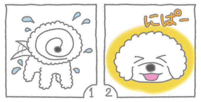 0 5 このプルプル!にぱー!はいつ見てもたまらん☺️ #犬ドリル #ビションフリーゼ #イラスト #2コマ漫画 22/07/22 12:01
