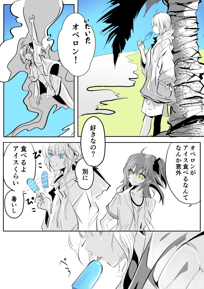 723 5231 完全防備のオベロンがとても可愛かったので勢いで描いた幻覚 何でも許せる方向け(カプ無し マスター2人います) 最後のページはおまけ 1/2 23/08/02 20:50