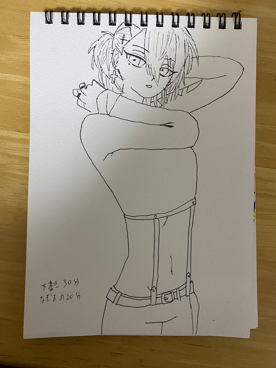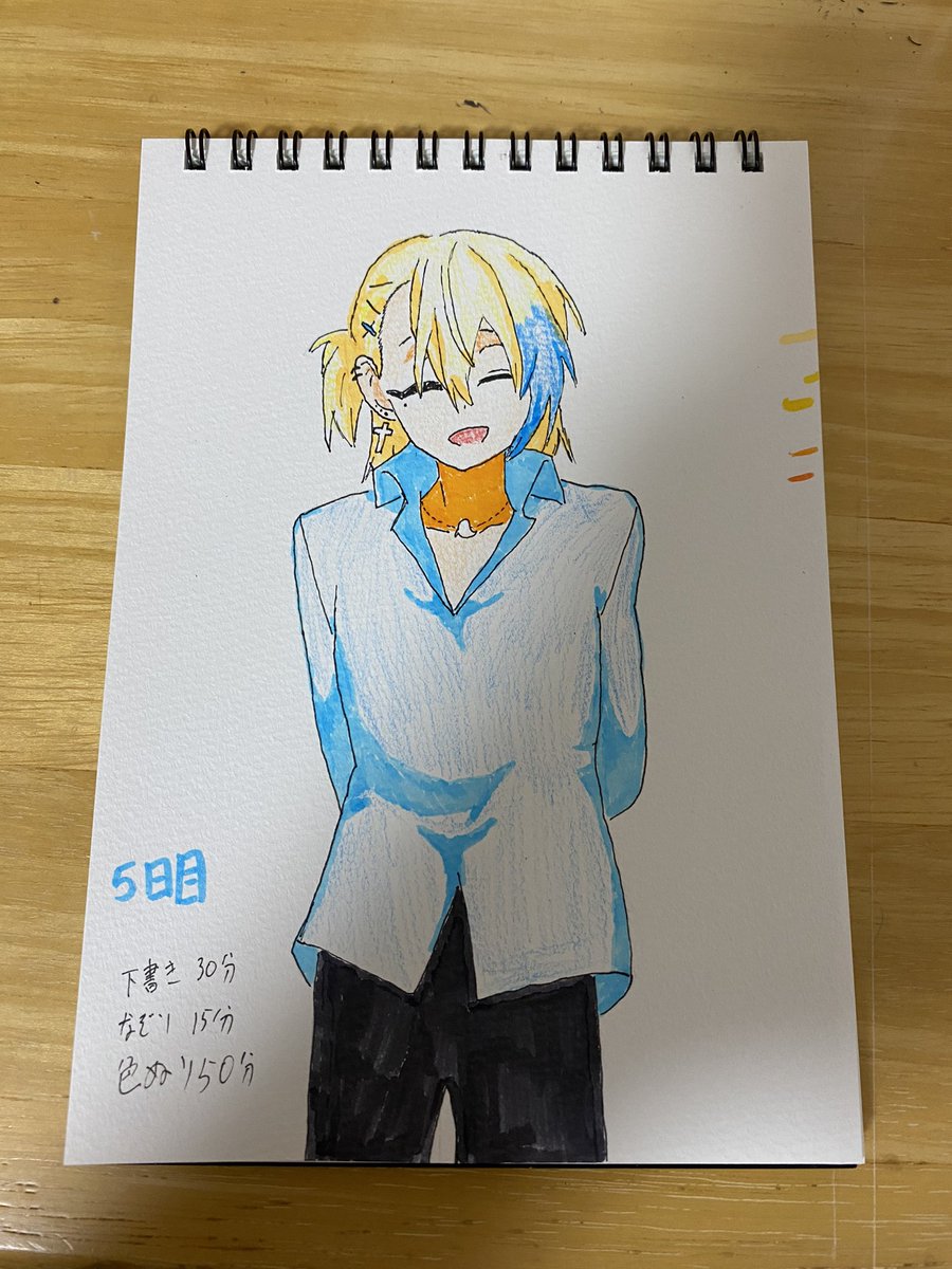 4日目の続き。バランス治したりして何とか完成。色のペンがペンで影付けたり?に向かない気がする。かと言って色鉛筆だと薄すぎてよく分からんしってなる。相変わらず傾いた顔が難しい。 幽識者はアドバイスしてくれると嬉しい。 #かすかまつか #かすかかくか