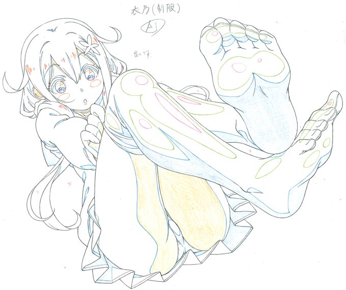 「おちこぼれフルーツタルト」 ED原画①。 掲載許可を頂いてるので、自分が描いたEDの原画を少しだけ。 止め絵でもそれぞれのキャラの魅力を引き出せる構図にしようと頭を悩ませました。 衣乃ちゃんのストッキングは結構拘り所です。 仁菜ちゃんのおっぱいも。 #ochifuru
